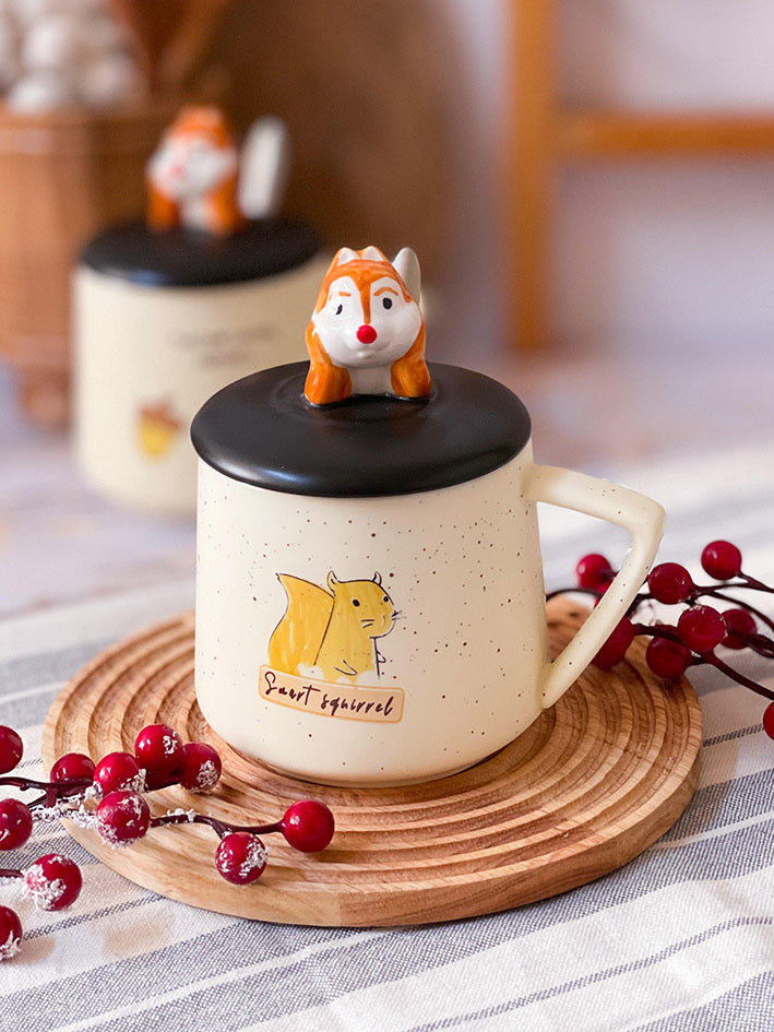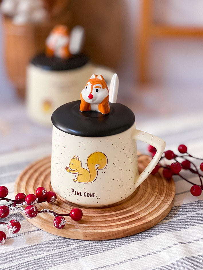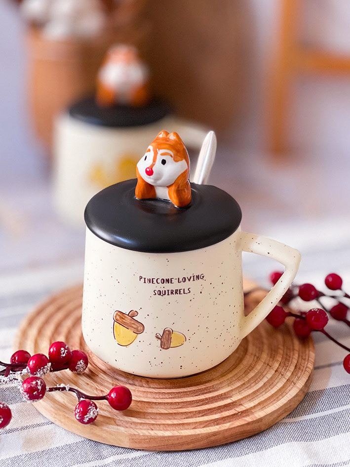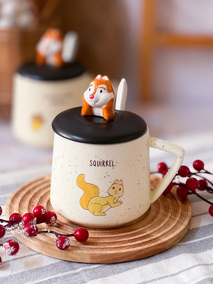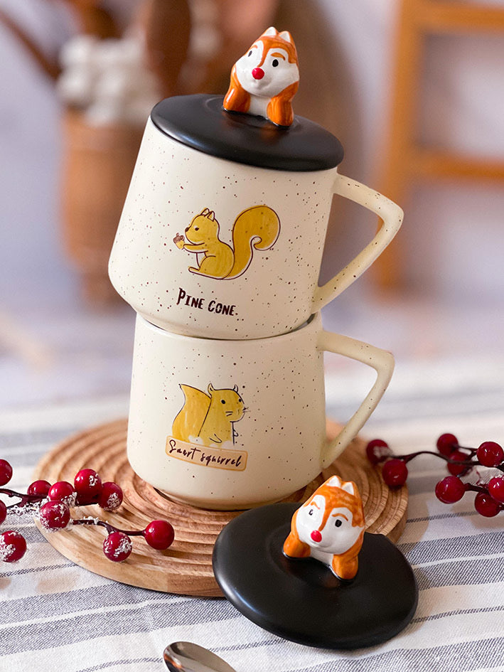 Taza Ardillita 3D con Tapa y Cucharita – Edición Forest Cozy