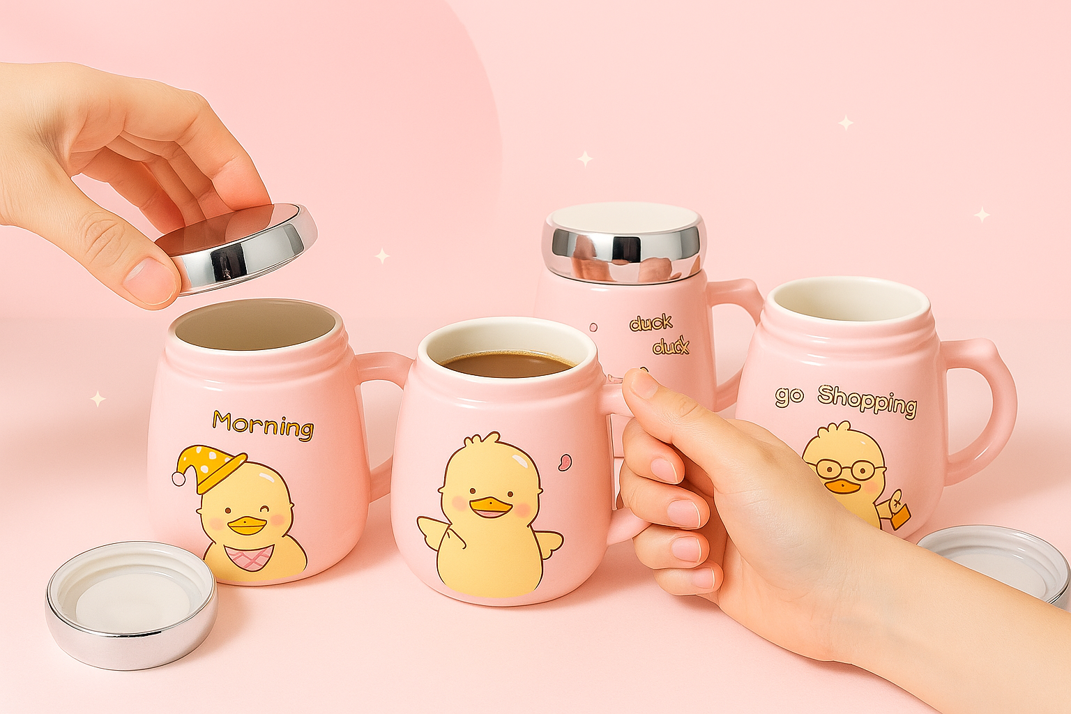 La colección “Duck Mood” llega con cuatro diseños únicos llenos de personalidad: Hi Duck, Morning Duck, Go Shopping y Duck Luck. Cada uno tiene una expresión distinta y tapa metálica brillante que mantiene tus bebidas calientitas por más tiempo.