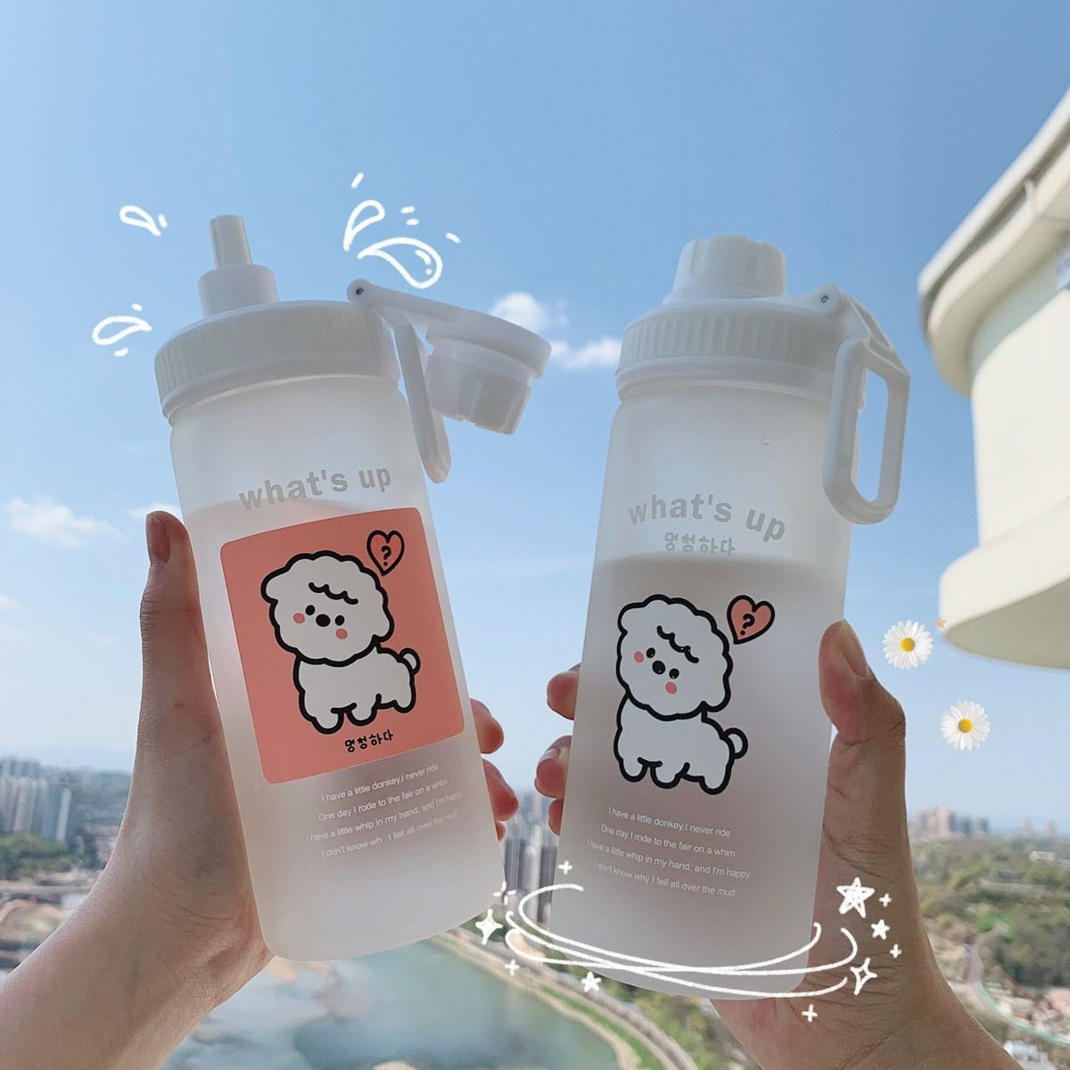 Botella de Agua Cute Mate 🐶🤍 | Reutilizable con Tapa Splash