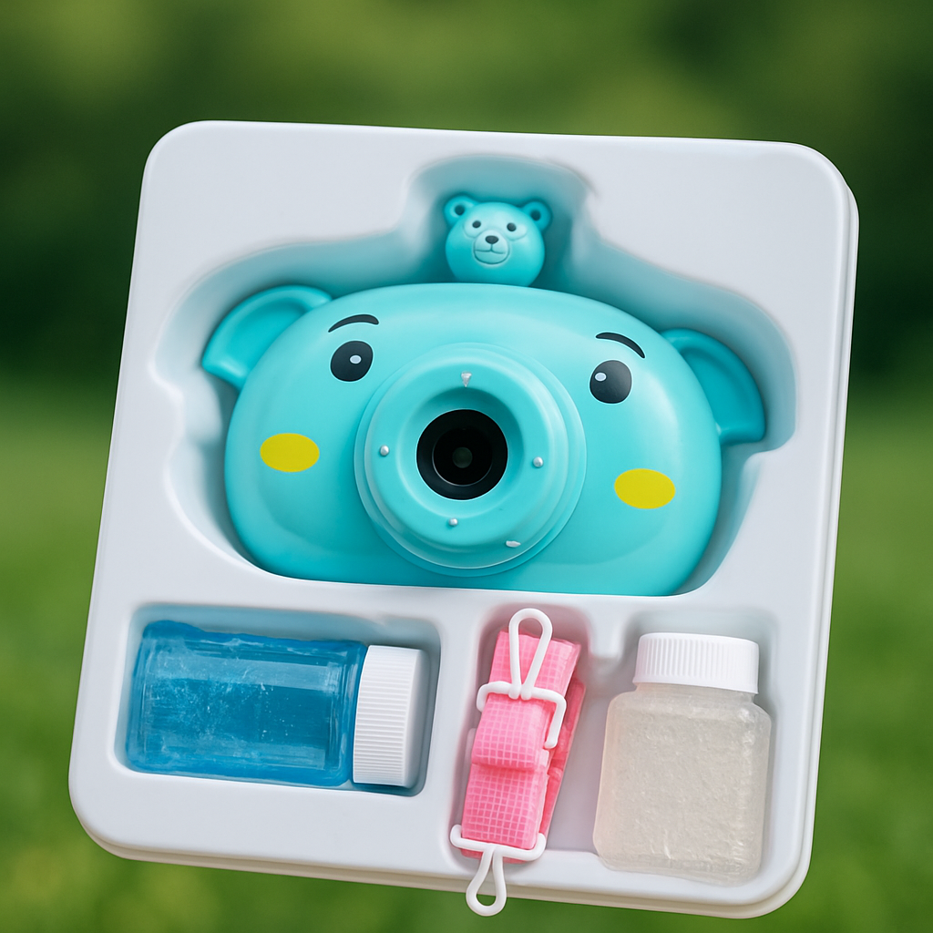 Diversión asegurada con esta cámara lanza burbujas estilo cute, diseñada para enamorar a grandes y chicos 💕