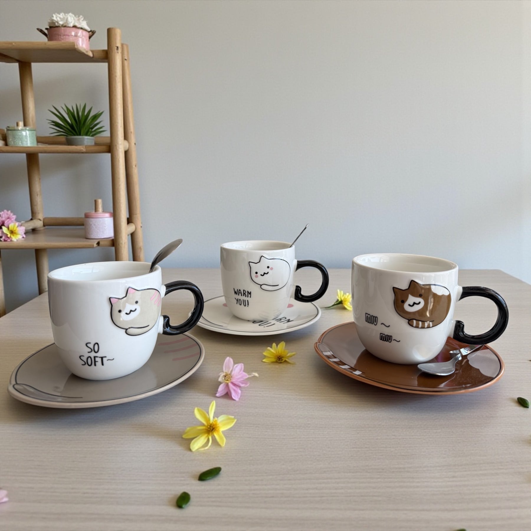 Dale un toque soft & cozy a tus mañanas con este set de tazas de gatito ultra tierno, perfecto para café, té o chocolatito ☕🐾