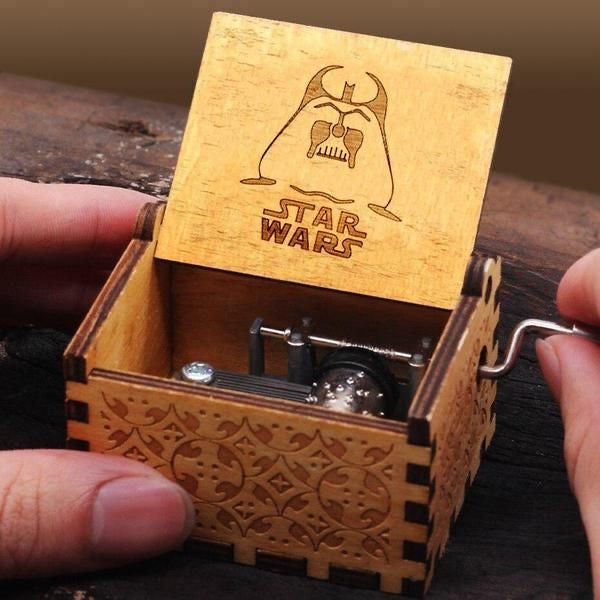 Revive la magia de la galaxia con esta Caja Musical Star Wars de madera grabada, diseñada para verdaderos fans.