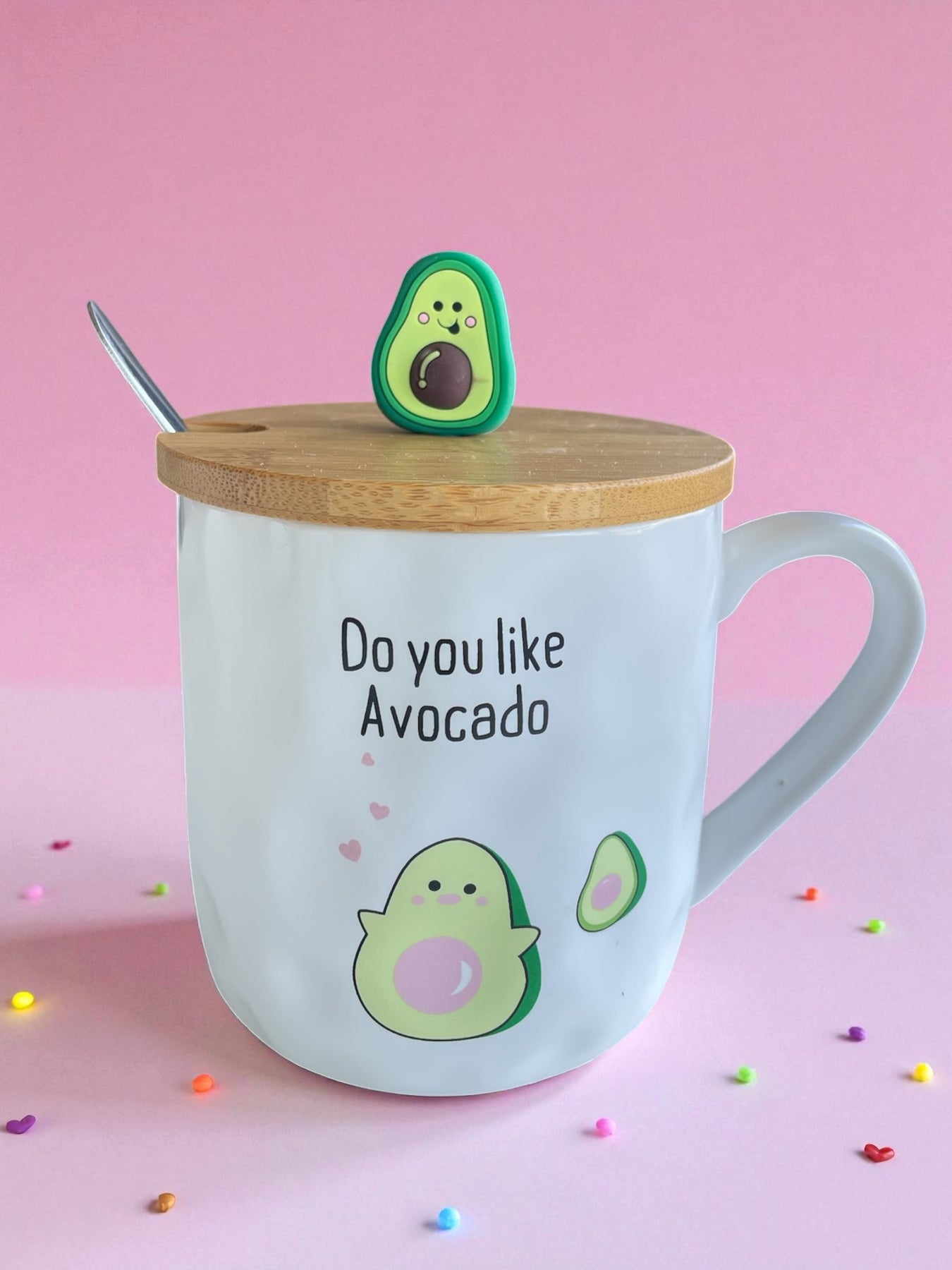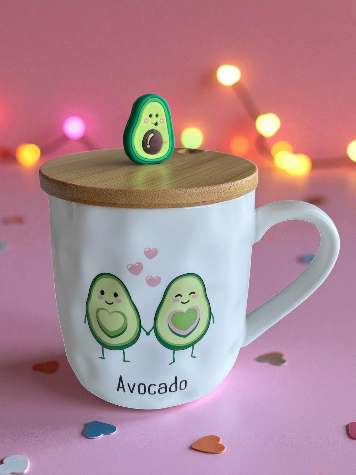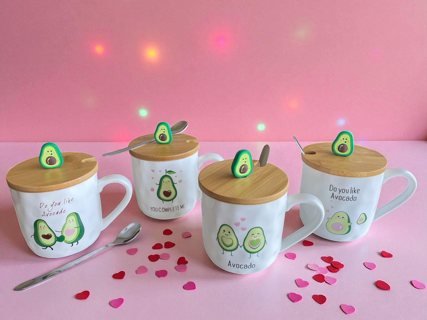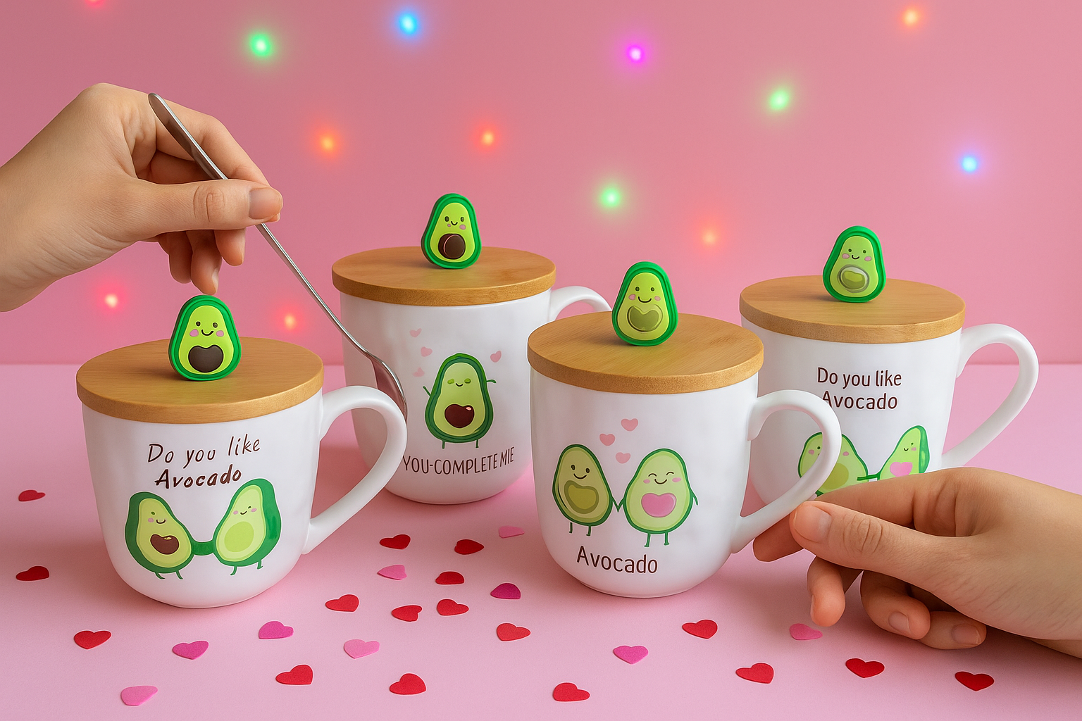 Taza de Cerámica “Avocado Love” con tapa y cuchara – Edición Corazones