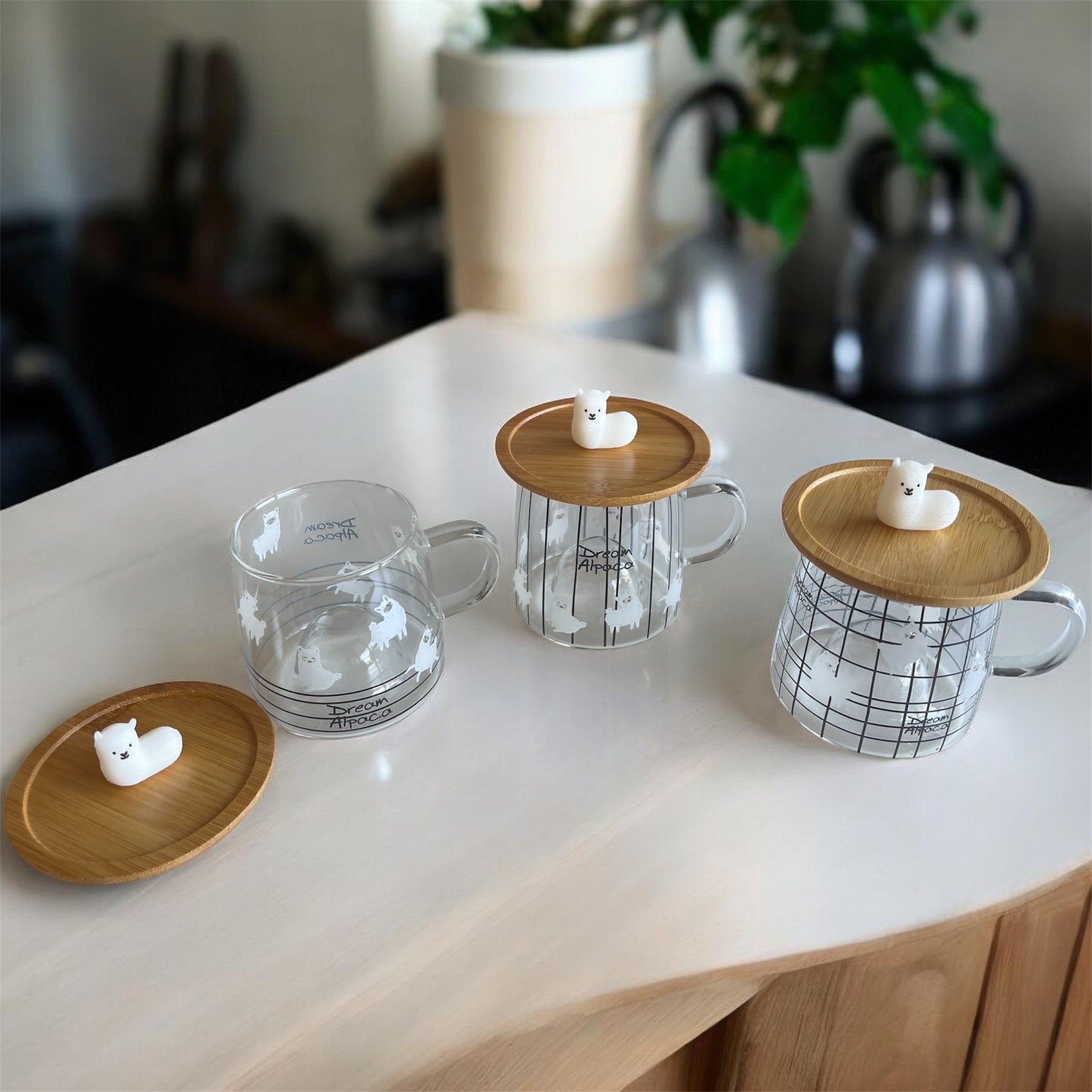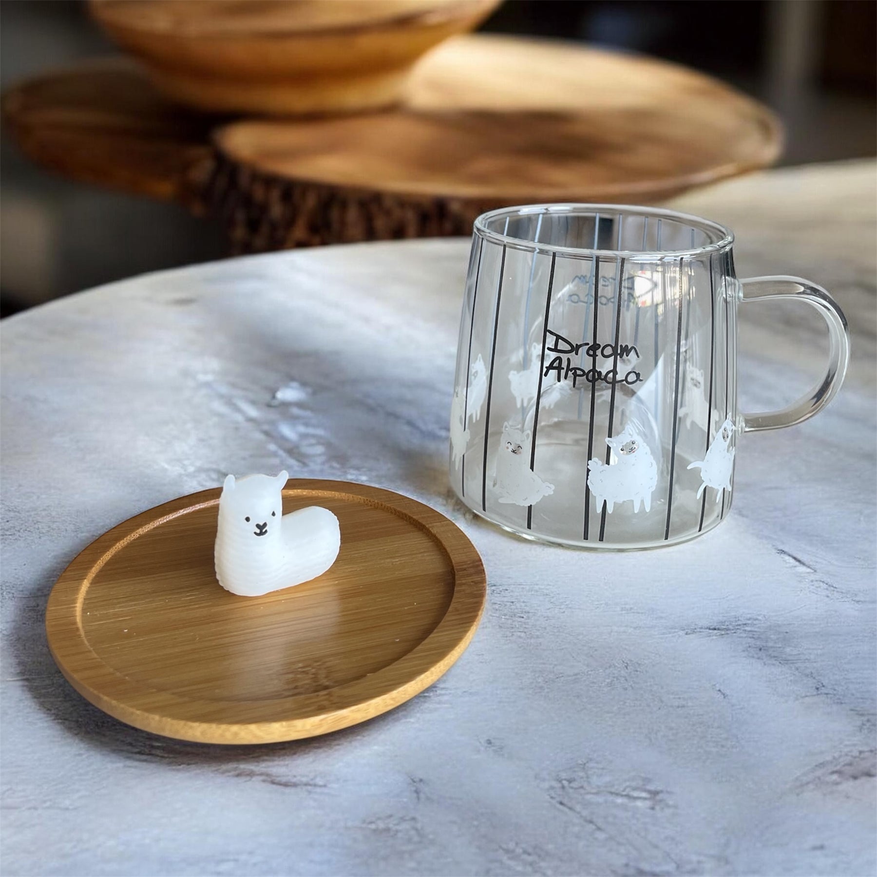Eleva tu rutina diaria con nuestra Taza de Vidrio Minimal, diseñada con ilustraciones delicadas y tapa de bambú natural con detalle 3D decorativo.